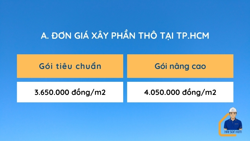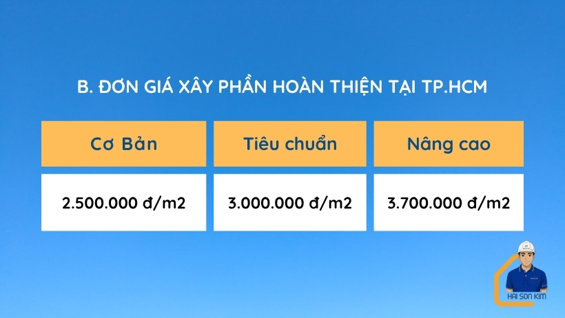 Đơn giá xây phần hoàn thiện tại TP.HCM
