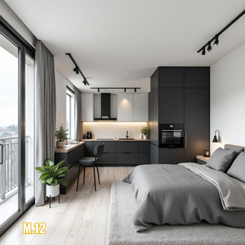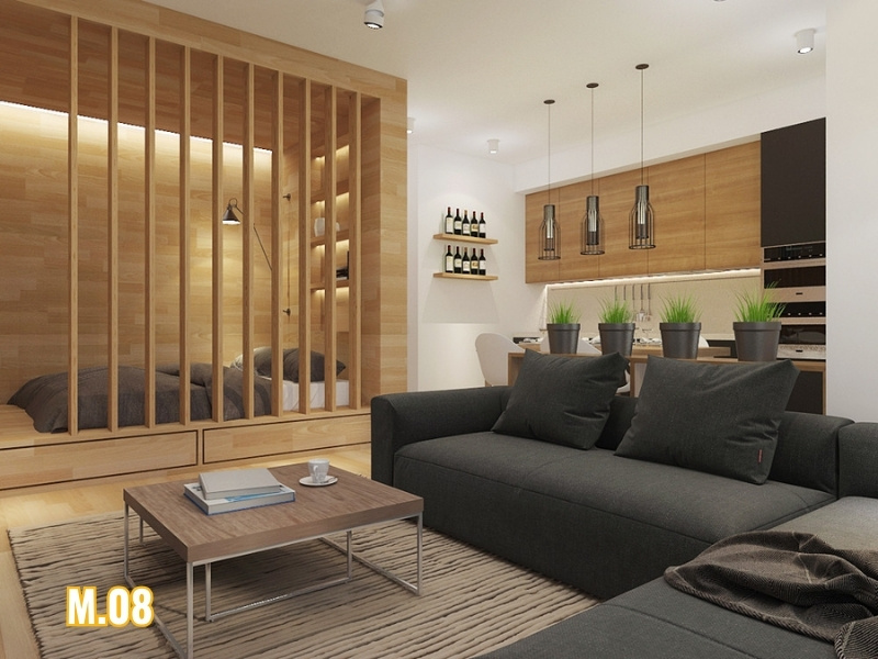 Đối với những căn hộ có diện tích nhỏ, việc ngăn chia thành nhiều phòng riêng biệt là không phù hợp. Thay vào đó, có thể thiết kế giường kết hợp tủ chứa đồ nhằm tiết kiệm không gian. Khu bếp nên bố trí hệ kệ và tủ bếp thông minh để lưu trữ vật dụng, giúp tổng thể căn hộ luôn gọn gàng và ngăn nắp.