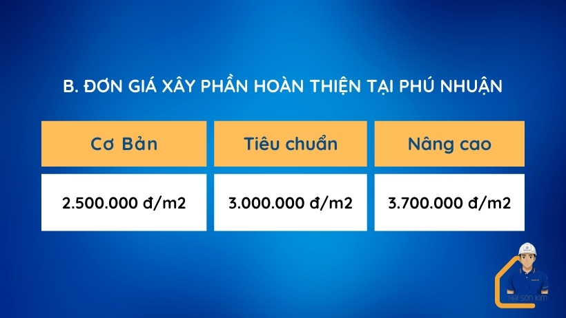 - Đơn giá xây dựng phần hoàn thiện tại Phú Nhuận từ 2.500.000 – 3.700.000 đ/m2
