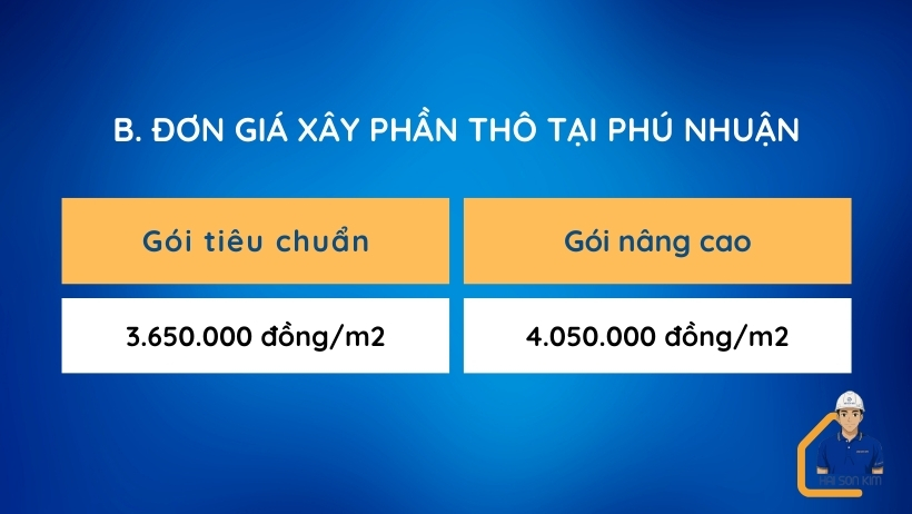 - Đơn giá xây dựng phần thô tại Phú Nhuận từ 3.650.000 – 4.050.000 đ/m2