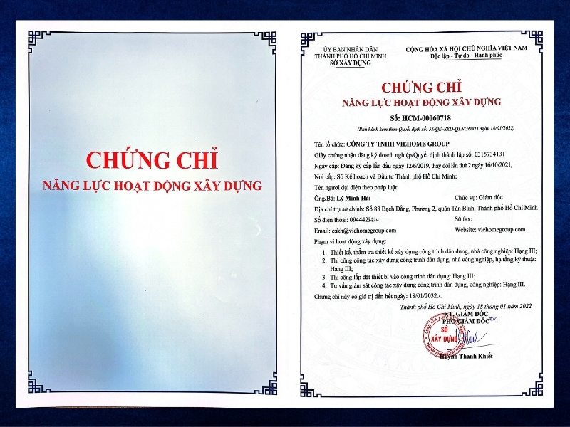 Chứng chỉ năng lực hoạt động ngành xây dựng của Hải Sơn Kim