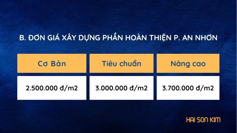 Đơn giá xây dựng phần hoàn thiện tại p. An Nhơn