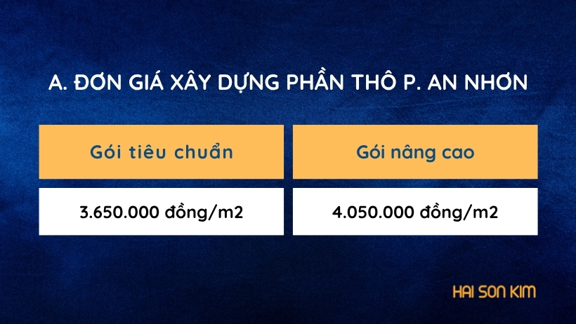 Đơn giá xây dựng phần thô tại p. An Nhơn