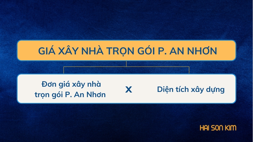 Thông thường, để xác định chính xác giá trị của một công trình, cần phải có bản thiết kế chi tiết thì việc tính toán mới thật sự cụ thể. Tuy nhiên, cách này khá phức tạp vì từng hạng mục đều được bóc tách tỉ mỉ. Ở giai đoạn đầu, bạn vẫn có thể tham khảo mức giá ước tính dựa trên đơn giá mà nhà thầu cung cấp. Vì vậy, chi phí xây nhà trọn gói tại phường An Nhơn thường được ước tính theo công thức sau: