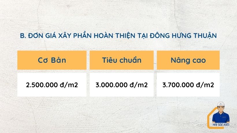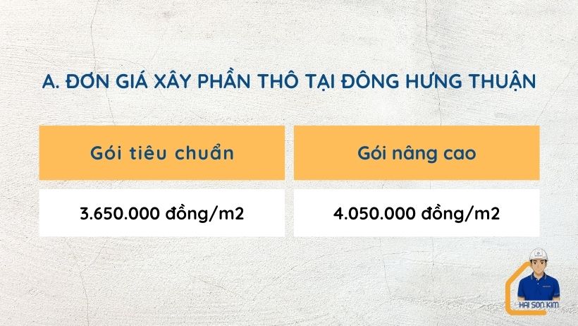 Bảng giá xây dựng phần thô tại Đông Hưng Thuận