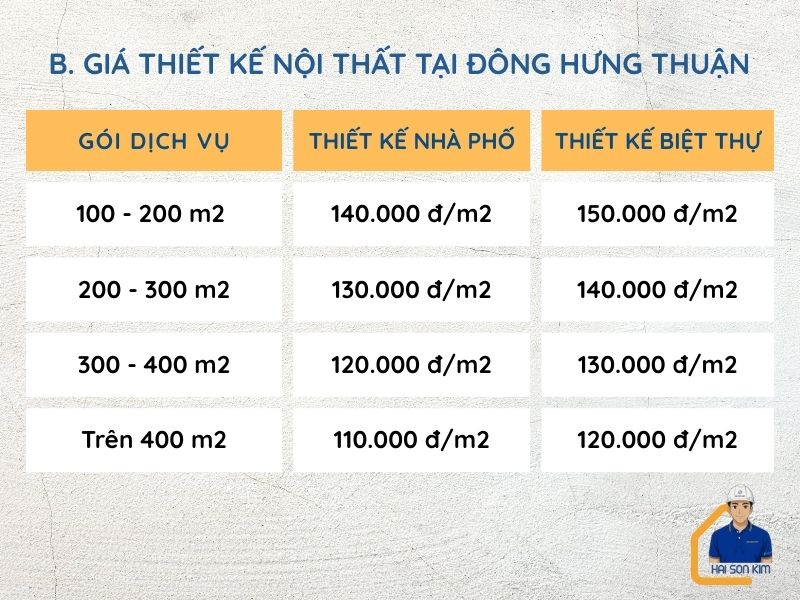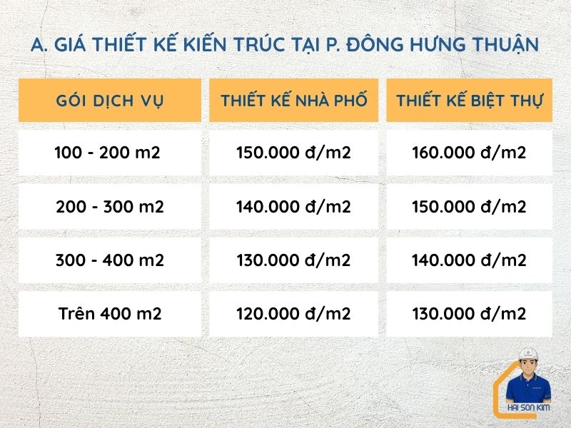 Tham khảo đơn giá thiết kế tại p. Đông Hưng Thuận, cụ thể như sau: