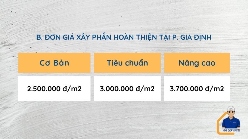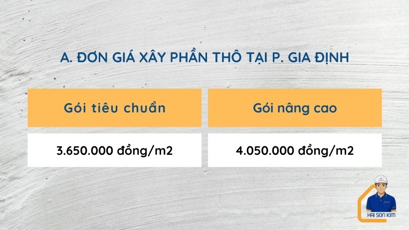 Dưới đây là cách tính đơn giá xây nhà trọn gói tại phường Gia Định, cụ thể như sau: