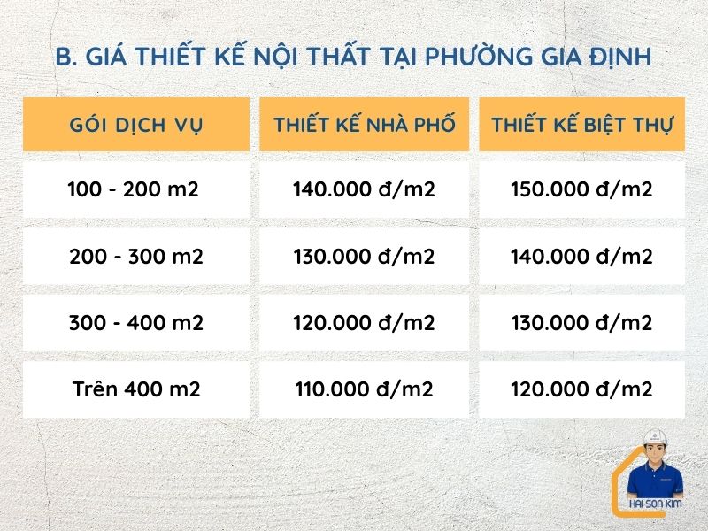 Bảng giá thiết kế nội thất tại Hải Sơn Kim: