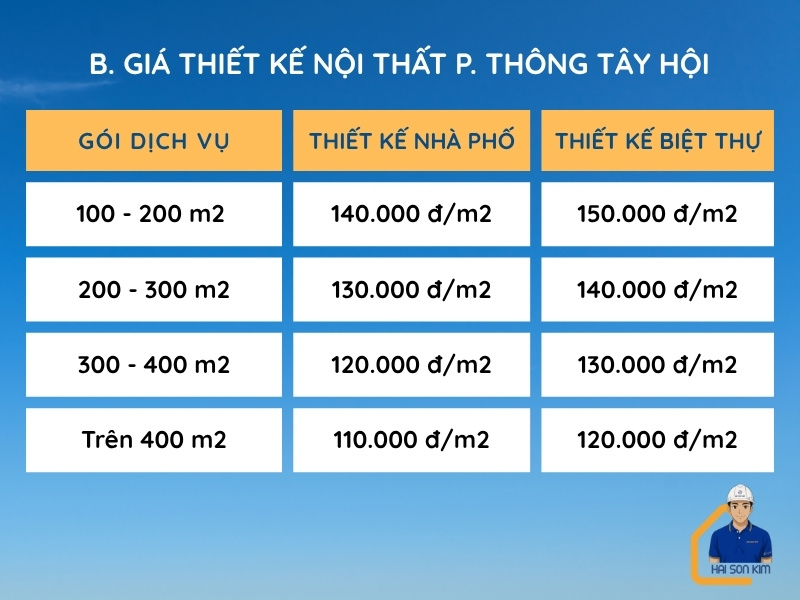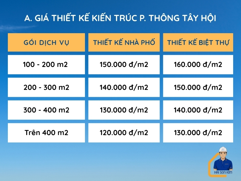 Đơn giá thiết kế xây nhà trọn gói tại phường Thông Tây Hội, cụ thể như sau: