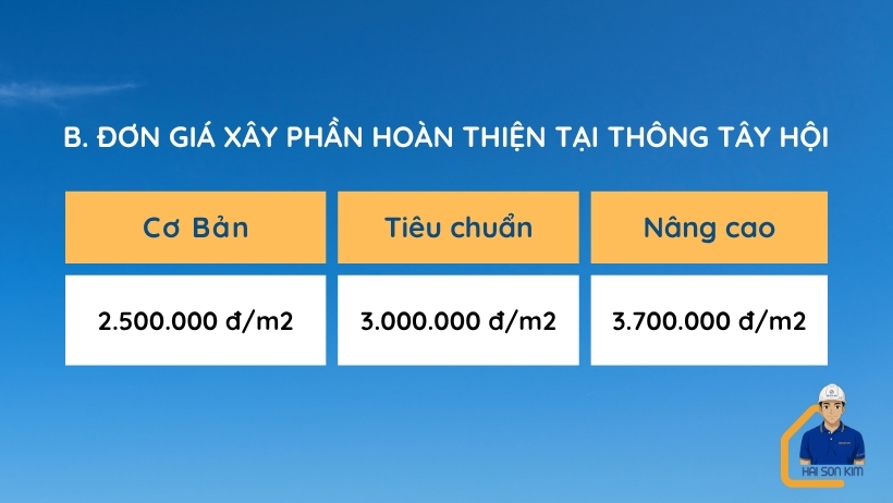 Báo giá xây dựng phần hoàn thiện tại phường Thông Tây Hội