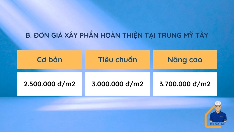 Đơn giá xây dựng phần hoàn thiện tại Trung Mỹ Tây