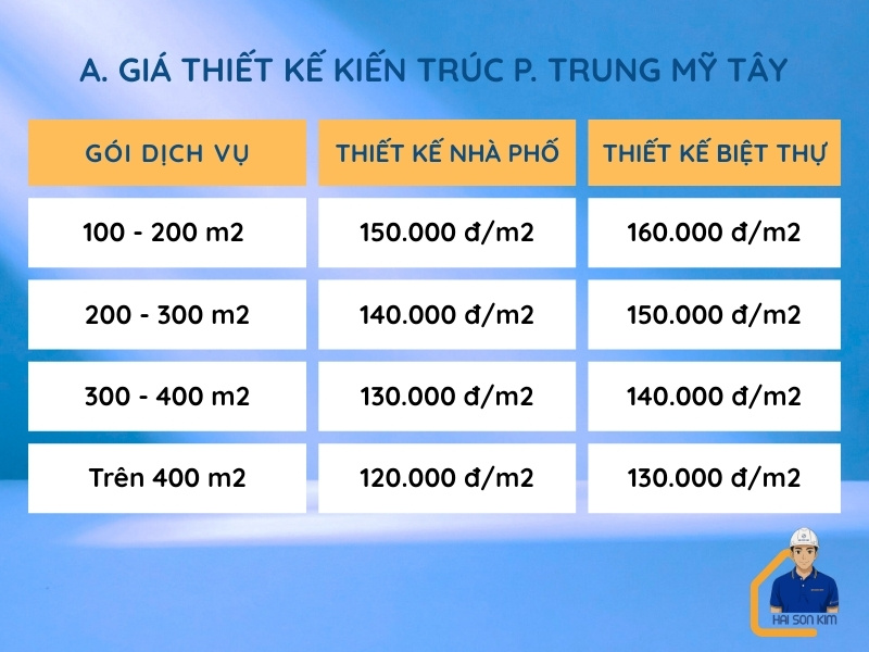 Đơn giá thiết kế tại P. Trung Mỹ Tây