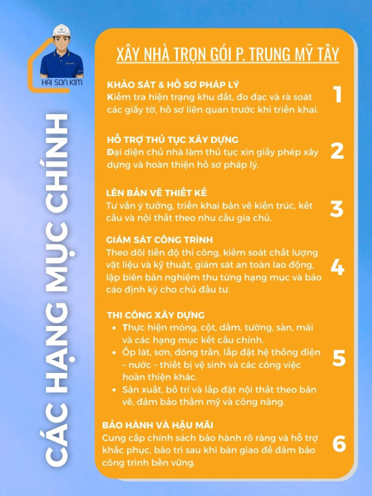 Các hạng mục xây nhà trọn gói tại phường Trung Mỹ Tây
