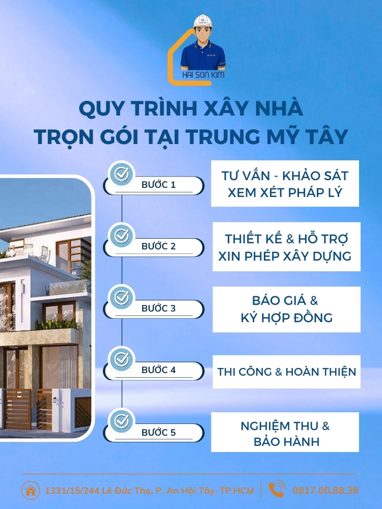 Quy trình xây nhà trọn gói tại phường Trung Mỹ Tây