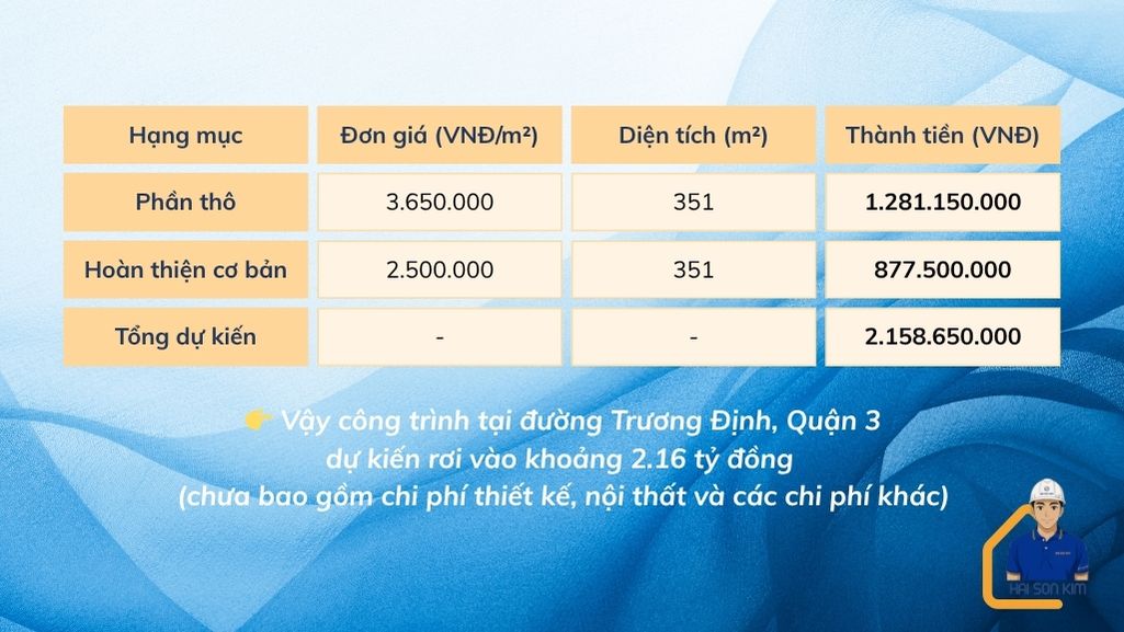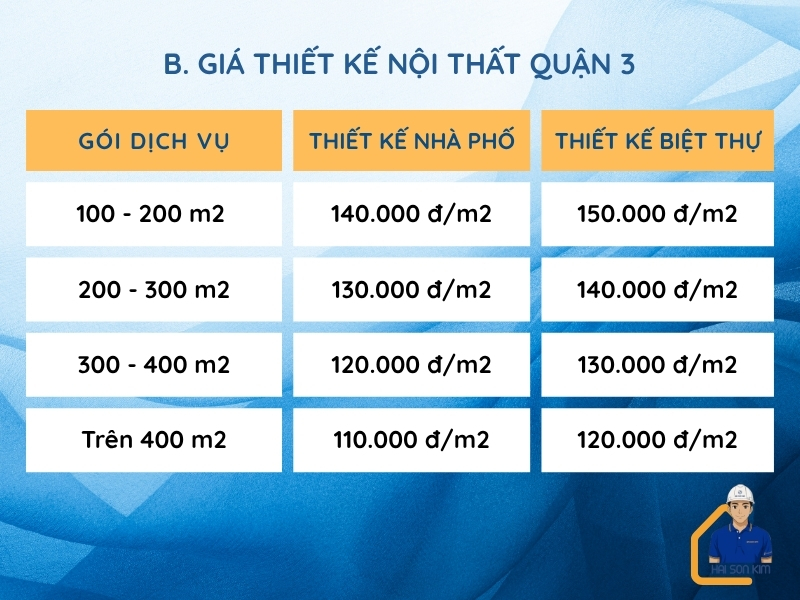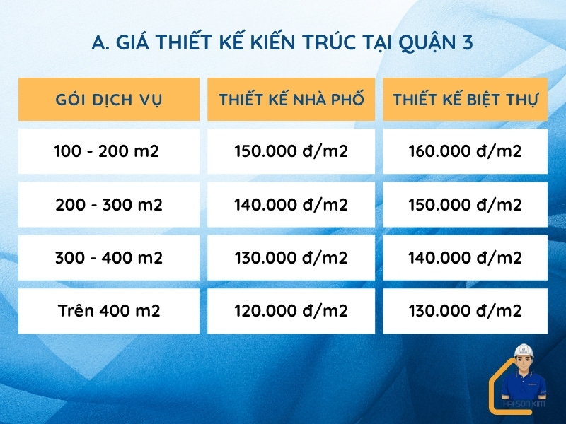 Hải Sơn Kim báo giá thiết kế xây nhà trọn gói quận 3 cho từng hạng mục, cụ thể như sau: