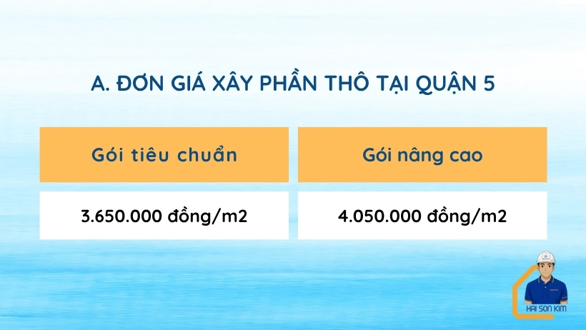 Dưới đây là phương pháp tính đơn giá xây nhà trọn gói tại Quận 5: