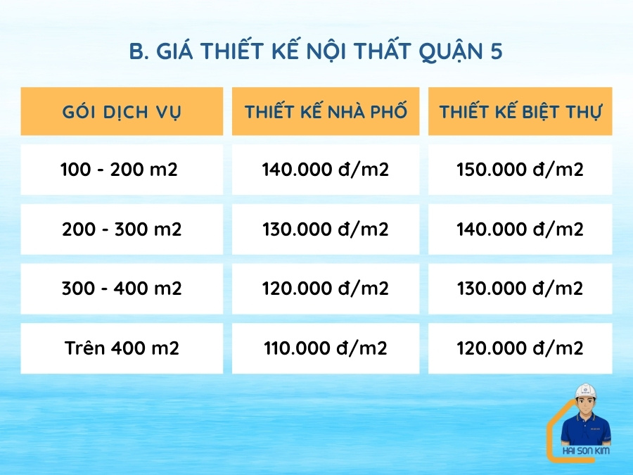 Tham khảo đơn giá thiết kế tại Quận 5 của Hải Sơn Kim: