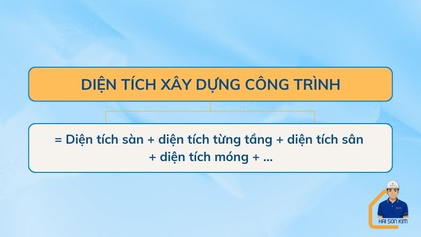 Dưới đây là công thức tính diện tích xây dựng như sau: