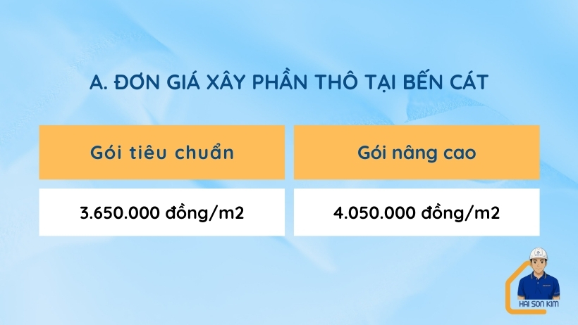 Đơn giá xây phần thô tại Bến Cát