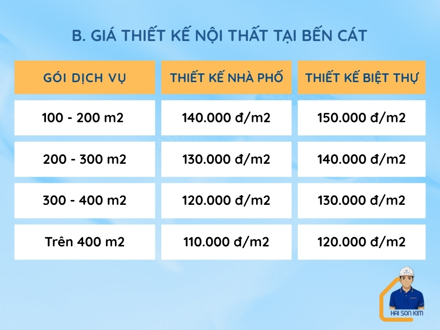 Đơn giá thiết kế tại Bến Cát