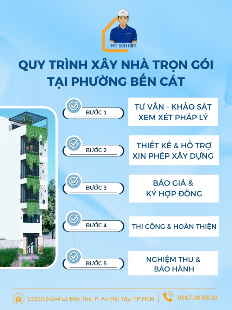 Nếu cần tư vấn dịch vụ xây nhà trọn gói tại Bến Cát, vui lòng liên hệ 0817008839 để được hỗ trợ và báo giá nhanh.