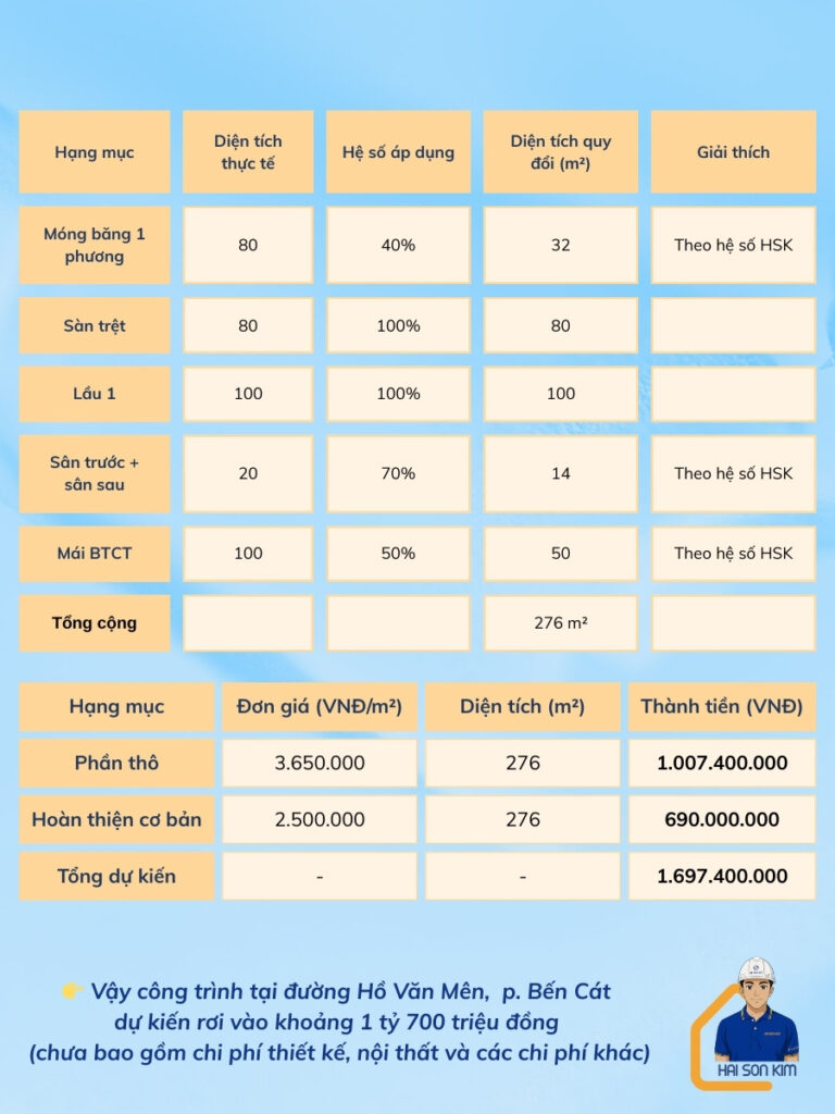 Nếu bạn còn thắc mắc nào khác về cách tính trên hoặc cần hỗ trợ khái toán nhanh cho công trình tại Bến Cát, vui lòng liên hệ qua 0817008839 để được Chúng tôi hỗ trợ nhanh chóng!