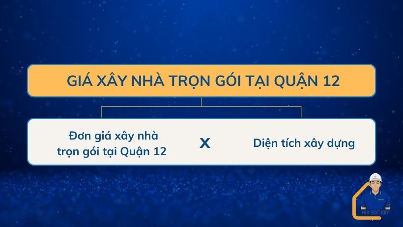 Nhiều gia chủ thường băn khoăn: “Xây nhà thi công trọn gói tại Quận 12 hết bao nhiêu?”. Như đã đề cập ở trên, chi phí sẽ phụ thuộc vào từng giai đoạn thi công được phân chia cụ thể. Dựa trên công thức tính chung như sau: