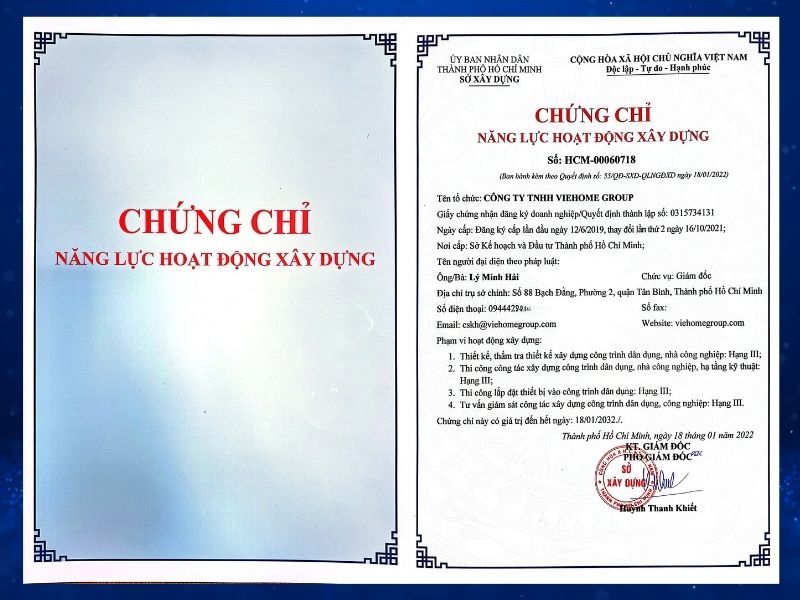 - Có đầy đủ giấy phép kinh doanh và chứng chỉ năng lực hành nghề xây dựng theo quy định pháp luật.