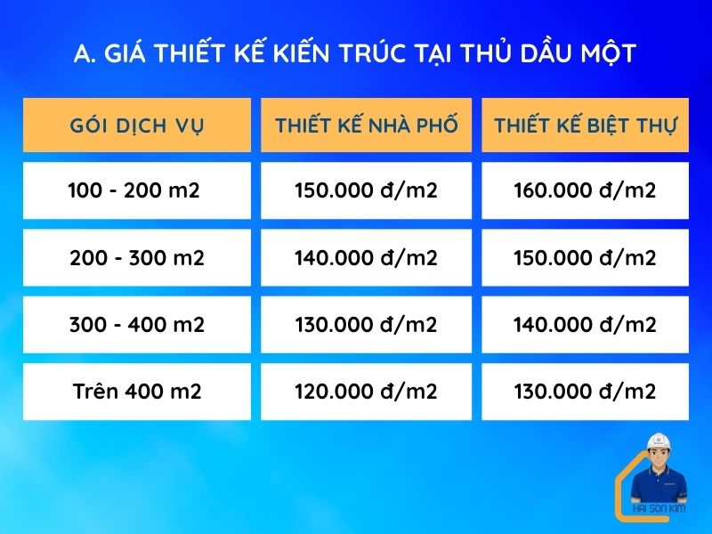Dưới đây là bảng giá thiết kế xây dựng tại TP. Thủ Dầu Một (cũ) mà bạn có thể tham khảo: