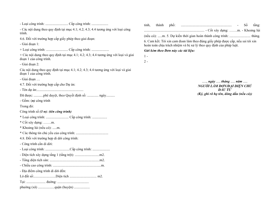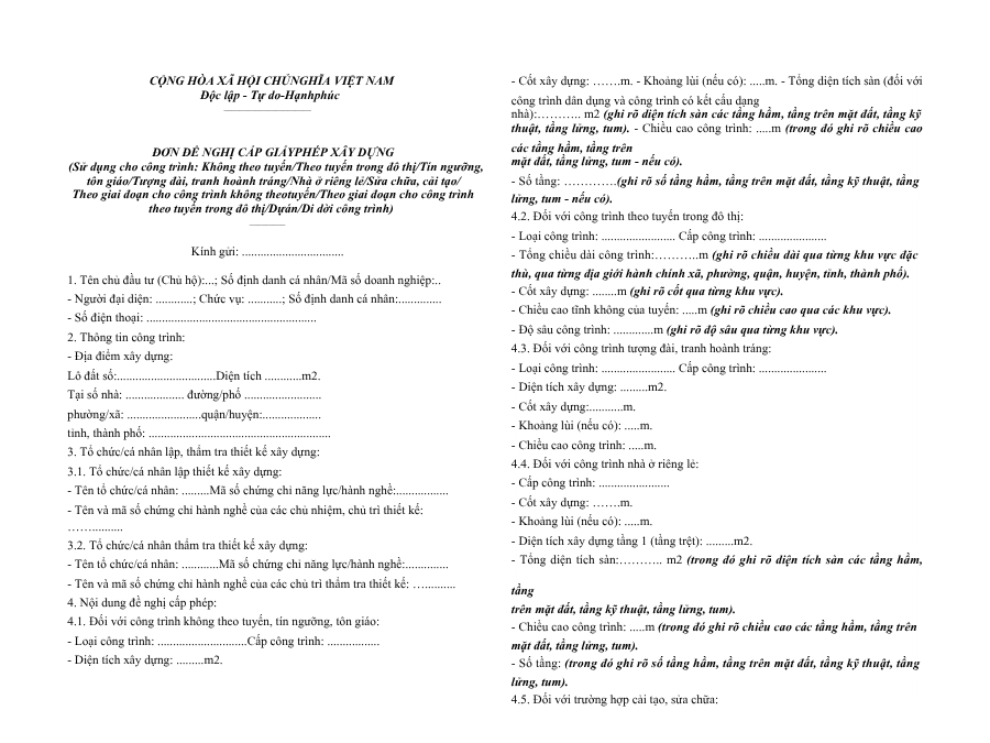 | Mẫu đơn, biểu mẫu xin phép xây dựng |